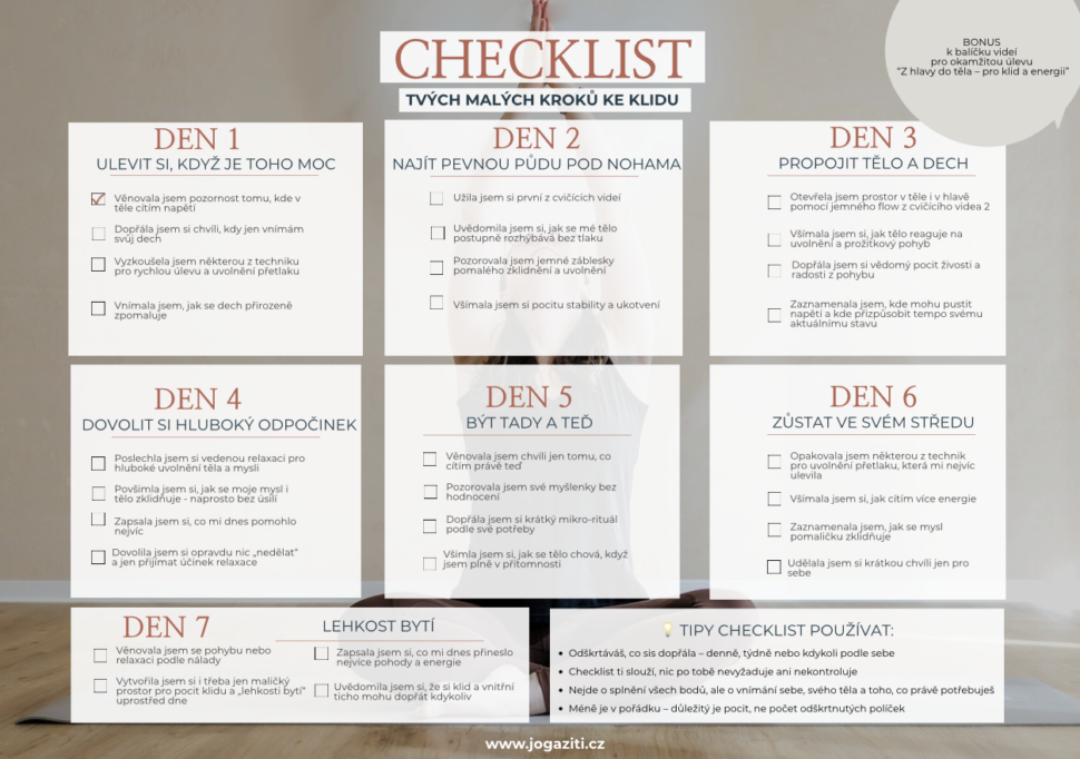 - Checklist ti slouží, nic po Tobě nevyžaduje ani nekontroluje